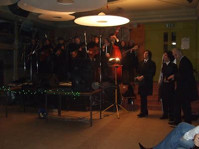 Todos os presentes puderam desfrutar de um agradável convivido, de umas ricas febras e das actuações das tunas. A actuação da VicenTuna contou com o instrumental Tanto Mar”, com o “Fado à despedida” onde solou o Tuno Topázio Manel, com a “Leitaria Garrett” e com a “Lisboa das cantigas”. Esta performance foi mais uma vez seguida pelo nosso fiel e extenso clube de fãs: a Ana e a Marta.